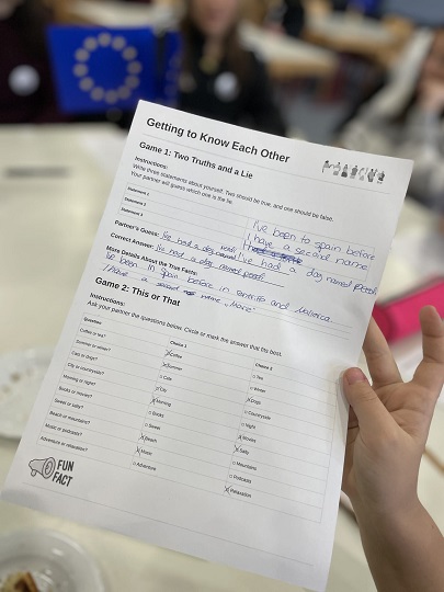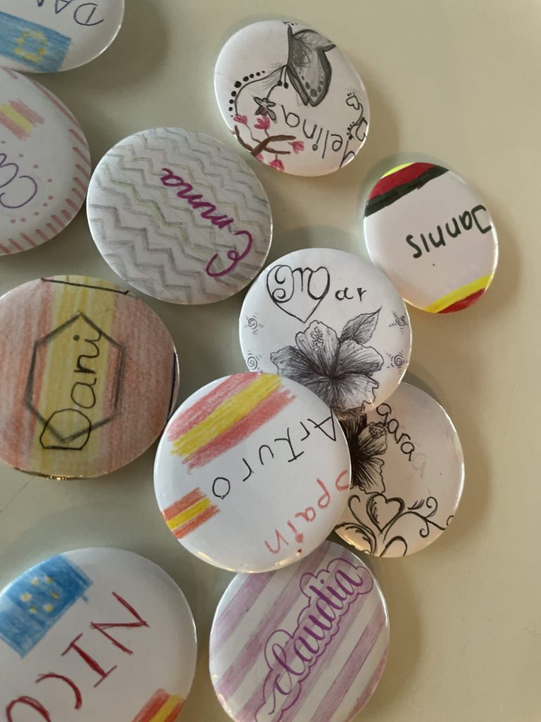 Der Montag stand im Zeichen des Ankommens und Kennenlernens: Nach einem offiziellen Empfang in der Schule lernten sich die Teilnehmer zunächst spielerisch kennen. Die Teilnehmenden gestalteten eigene Namens-Buttons, erkundeten das Schulhaus und stellten ihr Wissen in einer spannenden Stadtrallye auf die Probe.