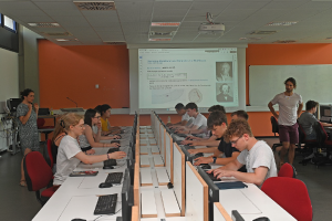 In einem anspruchsvollen Programm beschäftigten sich die TeilnehmerInnen an der RPTU mit der Erstellung von eigenen 3D-Risikokarten mit einem Computeralgebrasystem, der Möglichkeit der Nutzung biologischer neuronaler Netze auf einem Computer inklusive der praktischen Anwendung mit KI-Unterstützung, sowie den Chancen und Risiken der mathematischen Modellbildung.