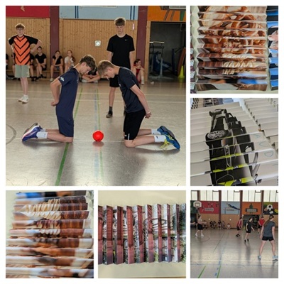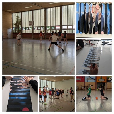 Nun galt es in der Woche vom 2.- 6. Juni in Herxheim weitere Meilen zu sammeln, um die anderen Teams auf der Reise um die Welt abzuhängen. Das sportlich-kulturelle Programm, das Frau Steinhauser und Frau Weigel zusammengestellt hatten, forderte auch in diesem Jahr einiges von den Teilnehmern: Foto-Challenge, Herxheim-Ralley, Herstellung von Rollagen mit Motiven passend zum Projekt, Völkerballturnier, Handballtraining mit einem Profi der Rhein-Neckar-Löwen, AllaHopp-Hindernisparcours, Kayaktour in Heidelberg und Fünfkampf mit außergewöhnlichen Disziplinen wie Frisbeezielschießen, Rückwärtsstaffellauf, Standweitsprung, „Rollbrett-Push’n’-Pull“ und Menschenhürdensprungstaffel.