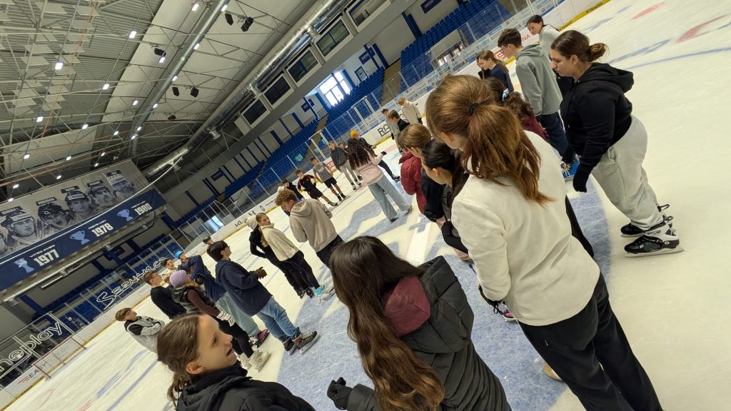 Stand der Montag noch unter dem Motto „Kennenlernen”, um die internationalen Teams nicht nur für die erste künstlerische Gruppenaufgabe, sondern auch für die anstehende Woche einzuschwören, ging es am Folgetag endlich sportlich zu: Im Volleyball und Ultimate Frisbee, in einer Eisschnelllaufstaffel und im Minigolf errangen die Teams bereits erste Punkte, die als Meilen auf der Reise um die Welt zurückgelegt wurden. Parallel zum Sport wurden Teamlogos erstellt, erste Greenscreen-Aufgaben gelöst und Lektürearbeit betrieben.