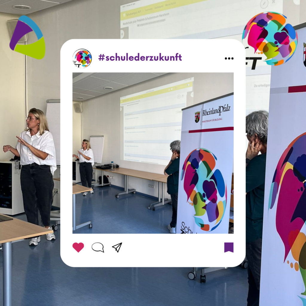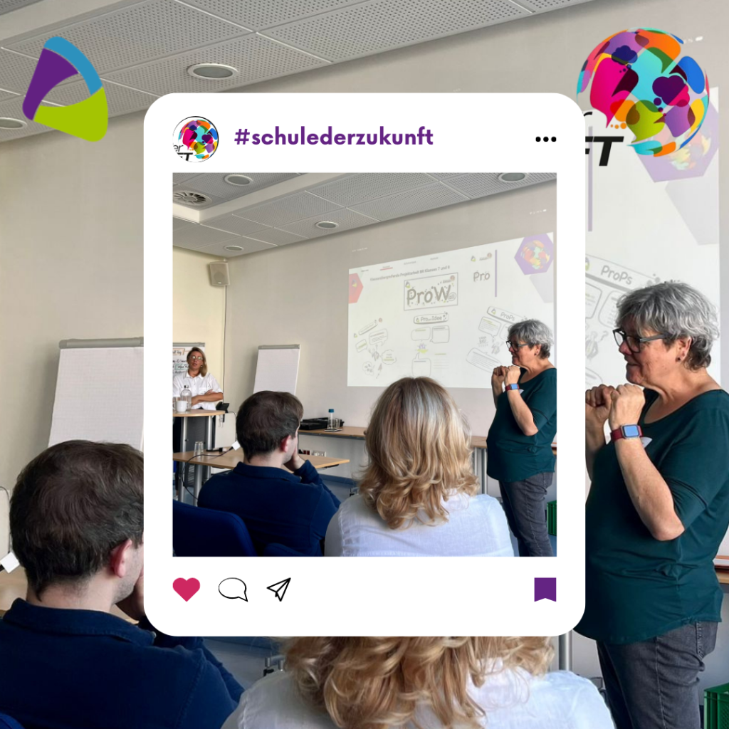 Am 19.09.2025 durften Frau Ohliger und Frau Gonzales-Casin unsere Schule bzw. das Arbeiten im Rahmen der „Schule der Zukunft“ anderen Interessierten in einer der Transformationswerkstätten präsentieren.