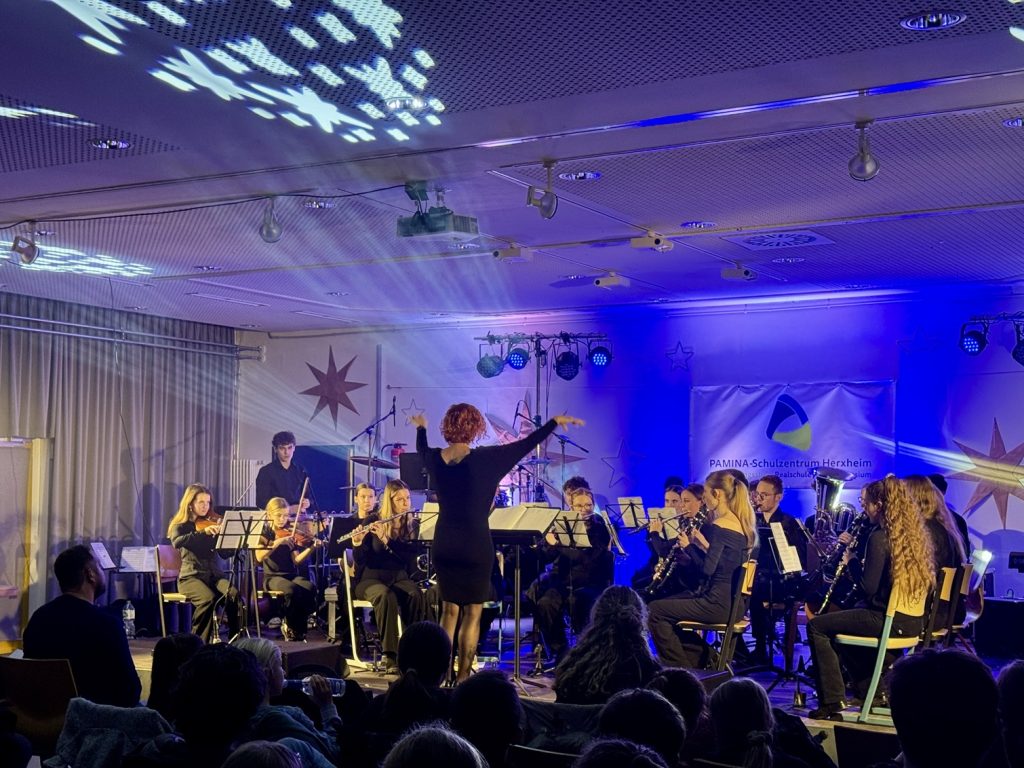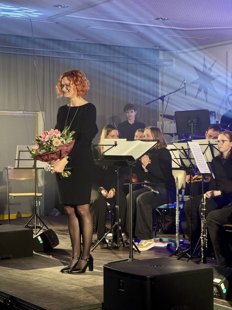 Am vorletzten Schultag war die Aula um 19 Uhr voll. Es gab ein umfangreiches und sehr abwechslungs- reiches Programm zu sehen, das von den Musiklehrerinnen und -lehrern des Schulzentrums zusammen mit Schülerinnen und Schülern aus allen Stufen und Schularten auf die Beine gestellt wurde. Von Or- chestermusik über Gesang und Klavierstücken bis hin zu einer „etwas“ härteren Version von „Last Christ- mas“ und Alpenmusik an Akkordeon und Posaune war alles dabei. Ein emotionaler Moment erwartete die Zuschauenden kurz nach der Pause, als sich Claudia Müller als Leiterin des Schulorchesters aus Zeit- gründen verabschiedete und den Taktstock an Margarete Chapman übergab.